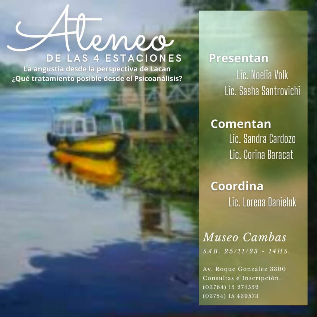 Ateneo de las 4 estaciones: “La angustia desde la perspectiva de Lacan ¿Qué tratamiento posible desde el Psicoanálisis”