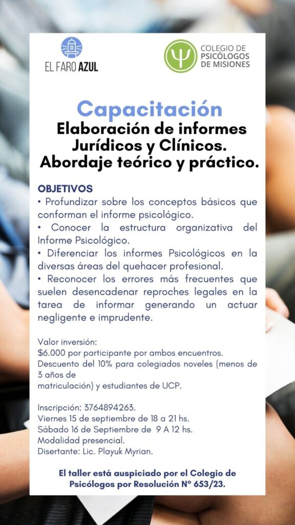 Home Colegiados Capacitación “Elaboración de informes jurídicos y clínicos. Abordaje teórico y práctico”
