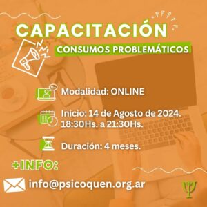 · La capacitación es virtual por zoom, comienza el 14/8 a las 18:30 hasta las 21:30, todos los miércoles por 4 meses (16 clases de 3 hs. reloj cada una).