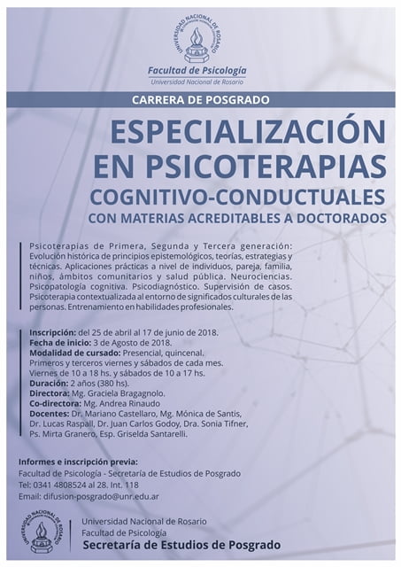 Carrera de Especialización en Psicoterapias Cognitivo Conductuales