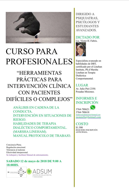 Curso “Herramientas Prácticas para Intervención Clínica con Pacientes Difíciles o Complejos”