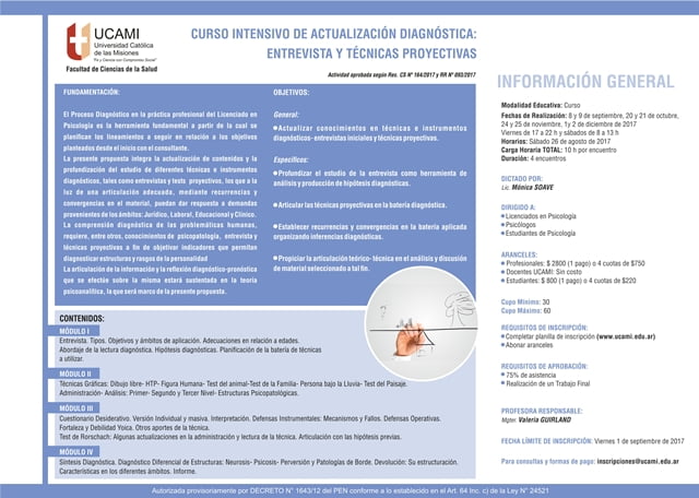 Curso Intensivo de Actualización Diagnóstica: Entrevista y Técnicas Proyectivas