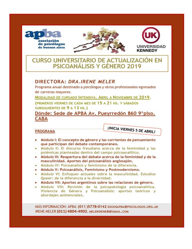 Curso Universitario de Actualización en Psicoanálisis y Género 2019