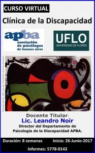 CONTENIDOS: El recorrido teórico por las ocho unidades brindará un estudio de las distintas patologías que  encontramos en la clínica de la discapacidad,  haciendo principal hincapié en intervenciones con sujetos diagnosticados con alguna discapacidad cognitiva, tales como retraso mental, autismo, esquizofrenia y el llamado TGD ( Trastorno general del desarrollo). Así también se analizará el abordaje con la familia y el trabajo interdisciplinario y transdisciplinario. Nuestro enfoque será desde el psicoanálisis, incluyendo un conocimiento de las   diferentes corrientes teóricas como la psicología cognitiva conductual.
