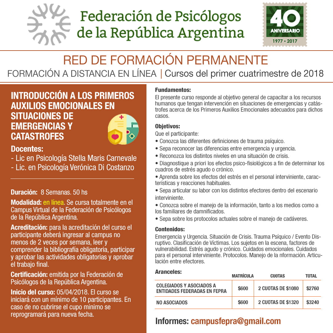 La pre-inscripción se realiza por la página web de FePRA (www.fepra.org.ar), en la sección de Red de Formación Permanente.