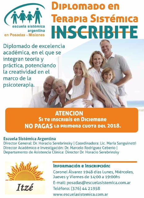 Ya podés pre inscribirte y reservar tu lugar para iniciar la Diplomatura en Sistémica con la prestigiosa ESA (Escuela Sistémica Argentina) en su sede Posadas, 2018.