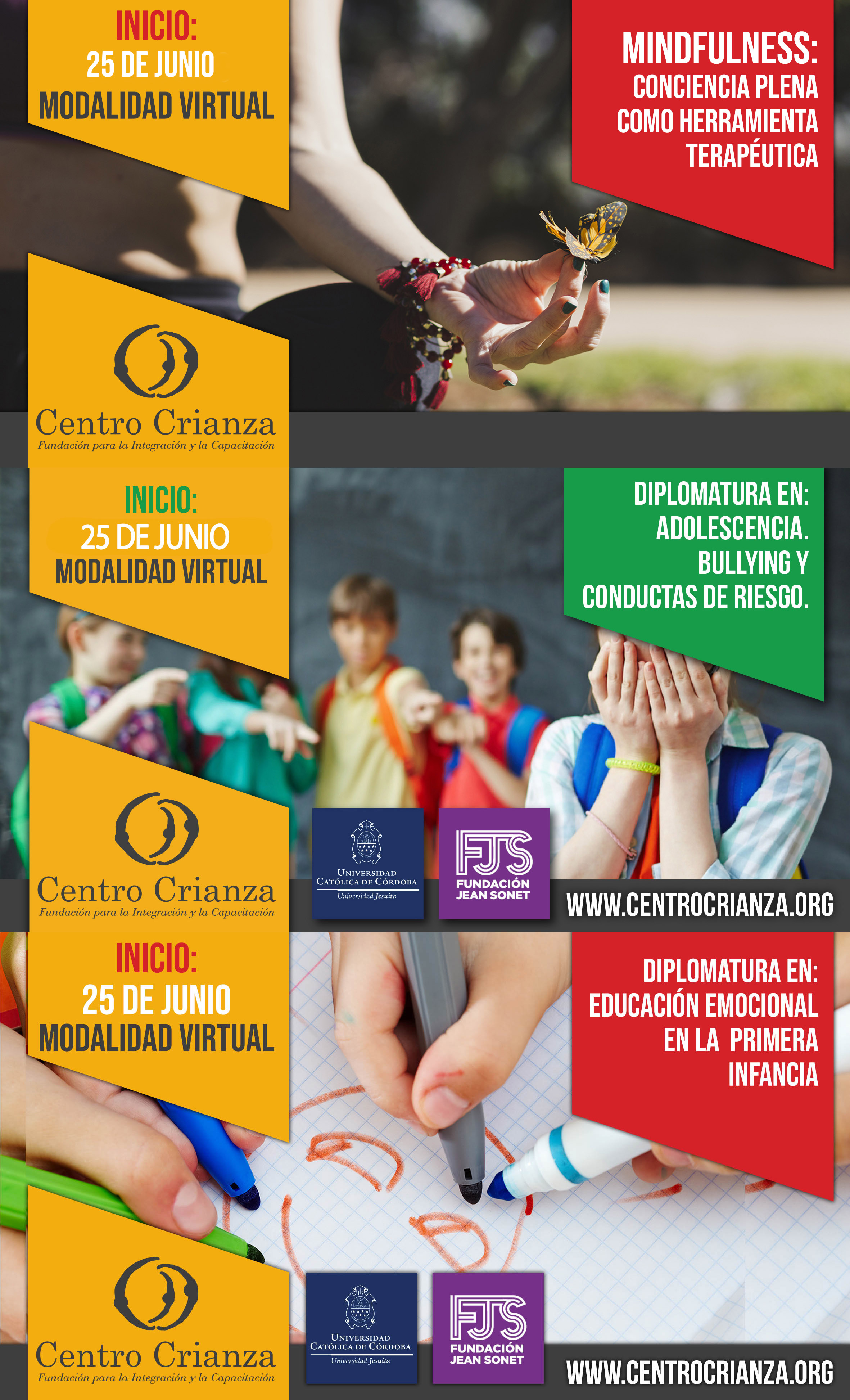 Las propuestas son Diplomaturas Virtuales dictadas en convenio entre la Fundación Centro Crianza y la Universidad Católica de Córdoba.
