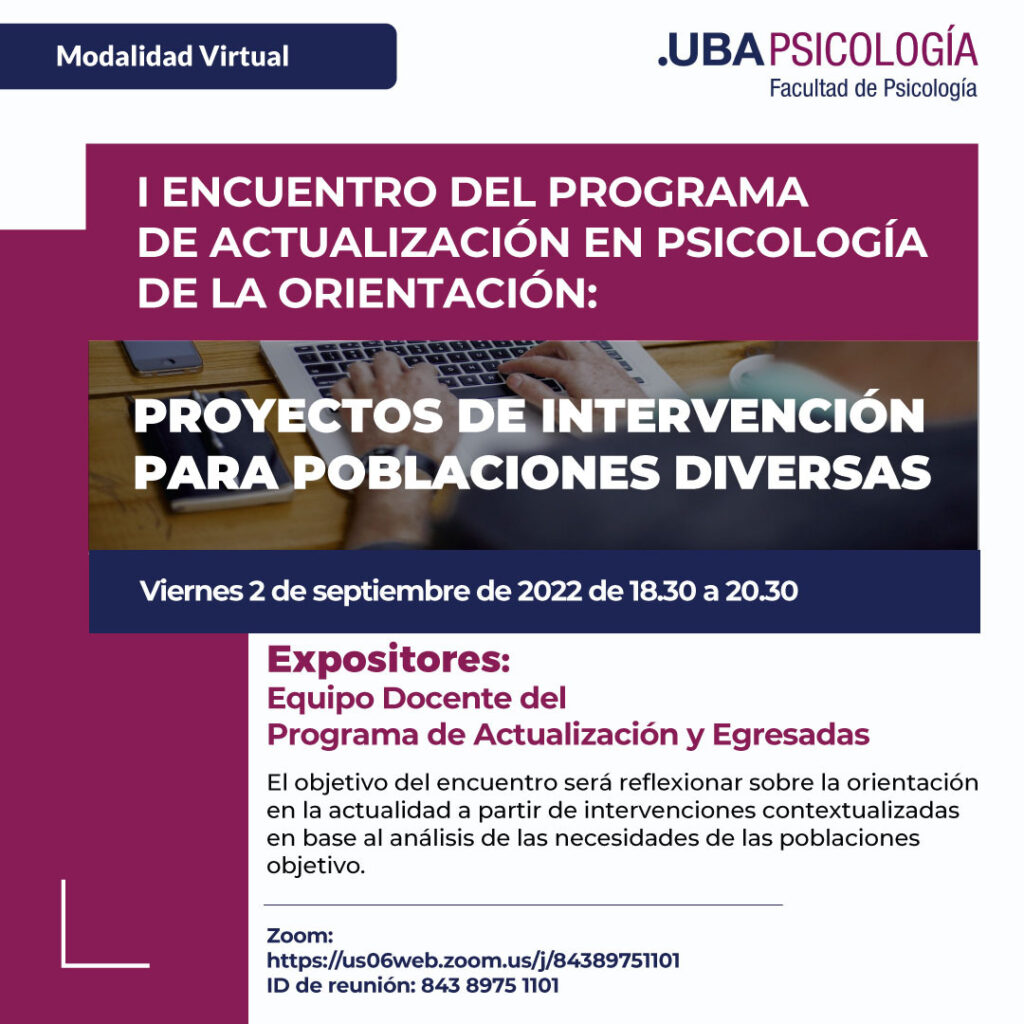 ENCUENTRO DEL PROGRAMA DE ACTUALIZACIÓN EN PSICOLOGÍA DE LA ORIENTACIÓN: PROYECTOS DE INTERVENCIÓN PARA POBLACIONES DIVERSAS
