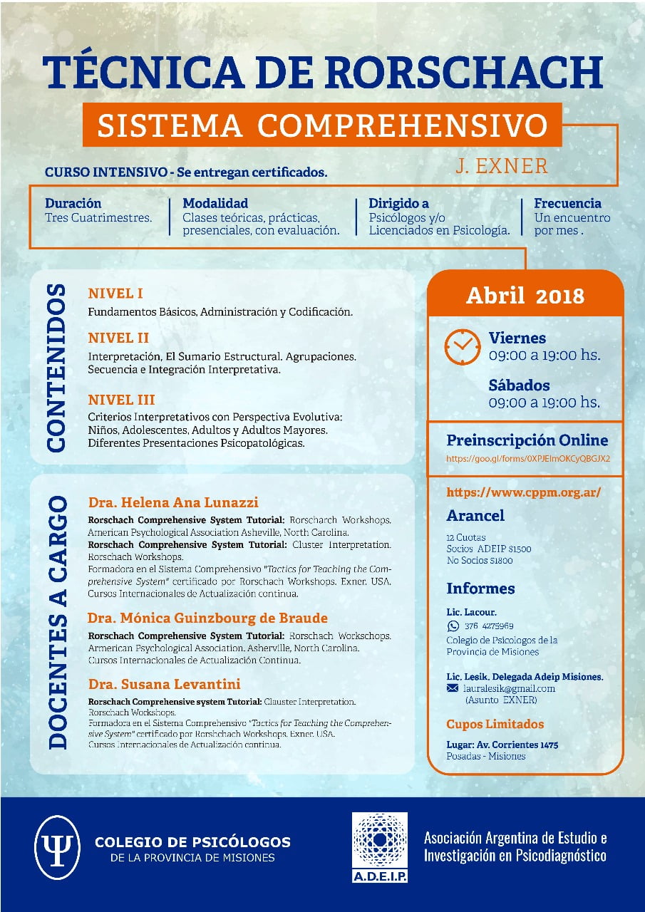 Curso Sistemático Teórico-Práctico Técnica de Rorschach – Sistema Comprehensivo J. Exner