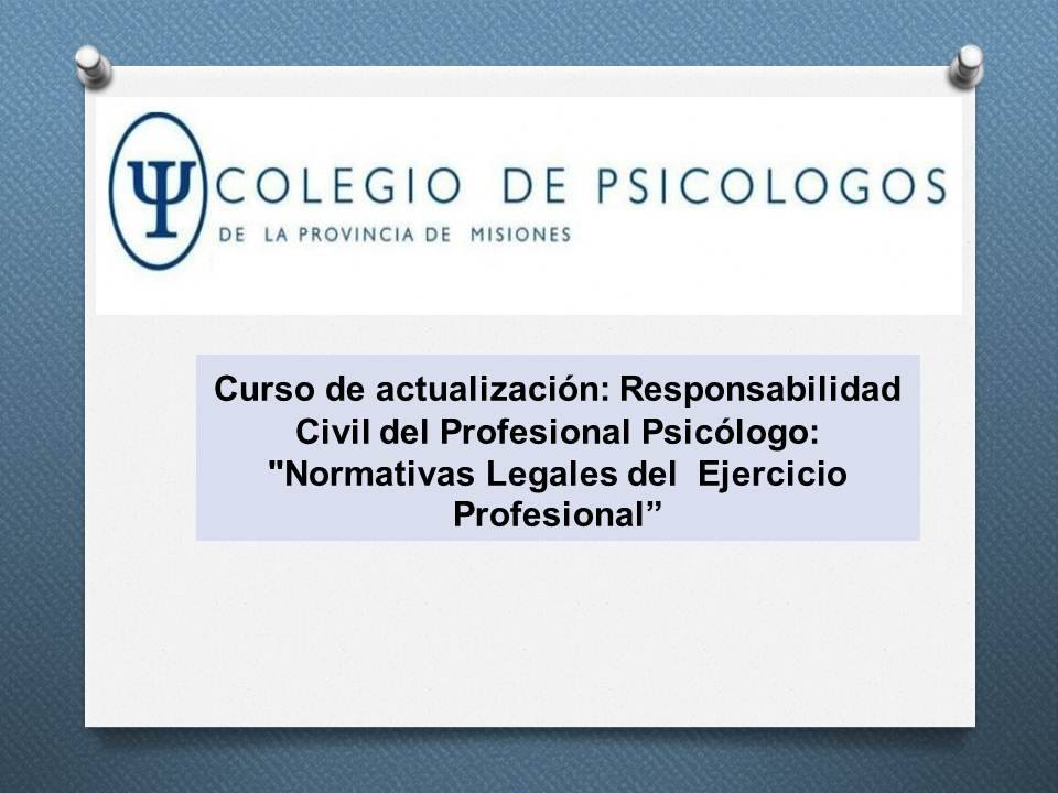 Curso de Actualización: Responsabilidad Civil del Profesional Psicólogo “Normativas Legales en el Ejercicio Profesional”