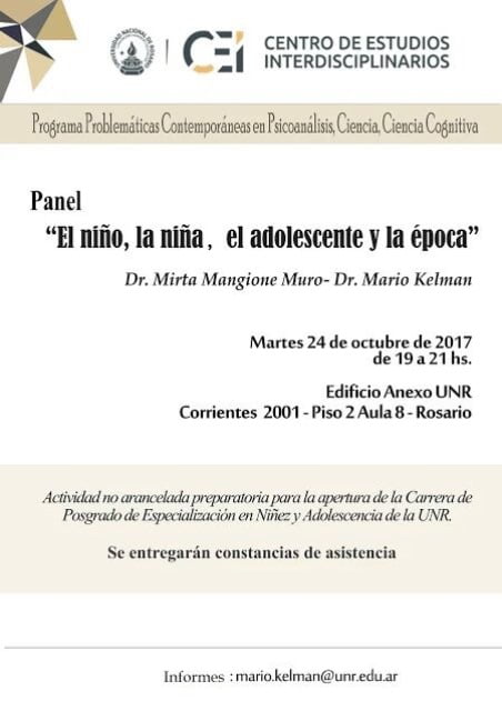 Invitación al panel: “El Niño, la Niña, el Adolescente y la Época” (Rosario)