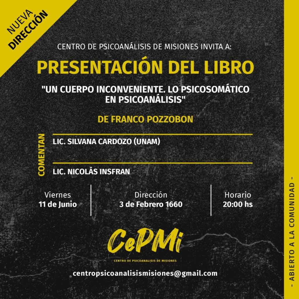 Nueva dirección del evento: Presentación del libro “Un cuerpo inconveniente. Lo psicosomático en el psicoanálisis”