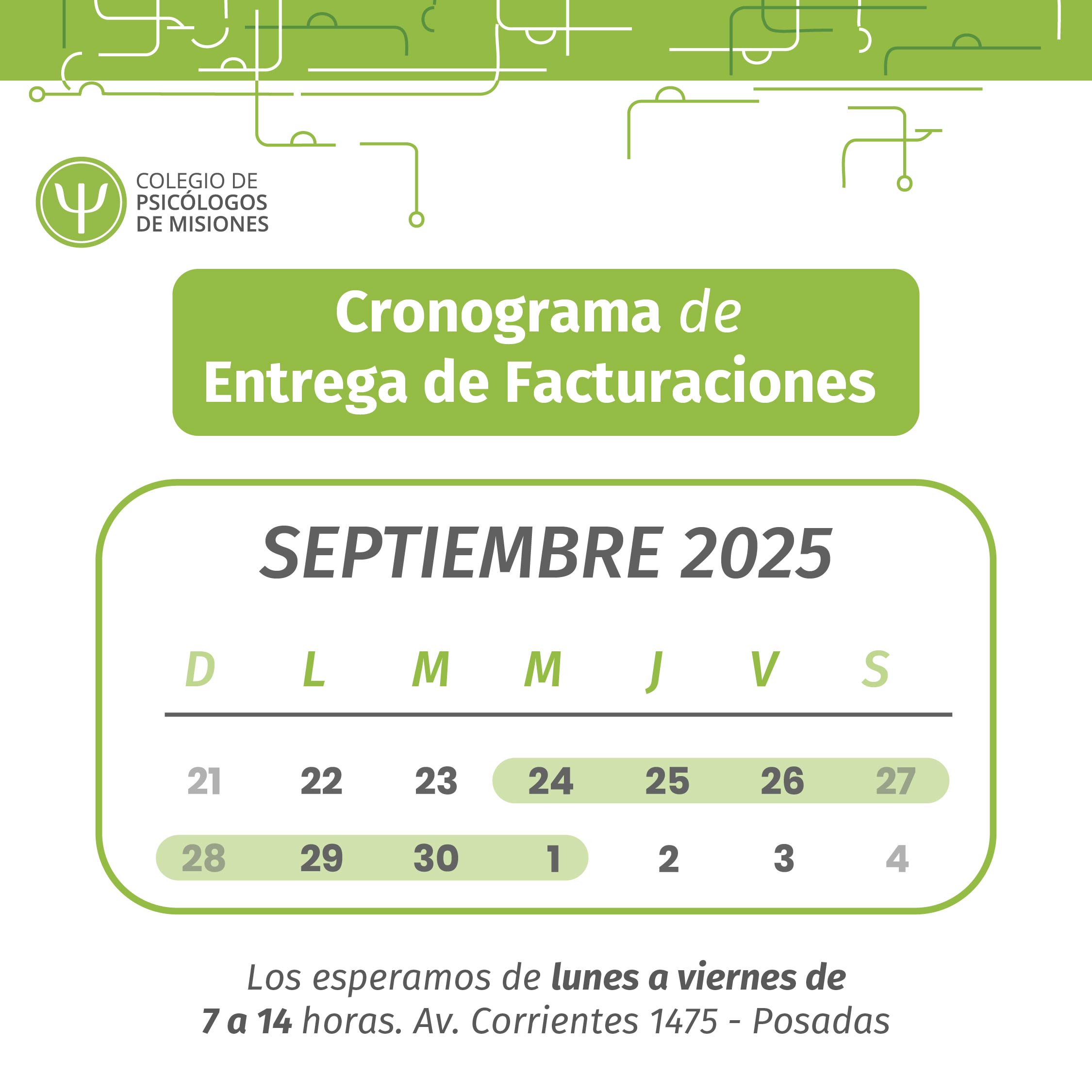 - FECHAS ESTABLECIDAS EN CRONOGRAMA. (click en botón verde más arriba) NO SE RECIBIRÁN FACTURACIONES FUERA DE ESAS FECHAS.