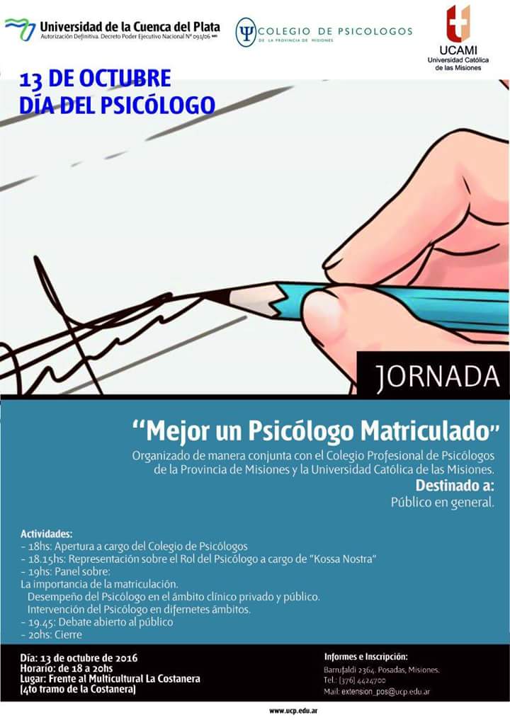 Del debate participaron: la Lic Luisella Lorenzo (docente de la UCP, Secretaria CPPM) quien abordó la temática de las psicoterapias breves, la Dra. Valentina Maltaneres (Directora de la Lic. en Psicología de la UCAMI) quien realizó una reseña del ejercicio de la psicología en sus distintas áreas y la Lic. Gisela Encina (docente de UCAMI, Presidente CPPM) quien señaló la importancia de la matriculación y las funciones de los Colegios Profesionales.