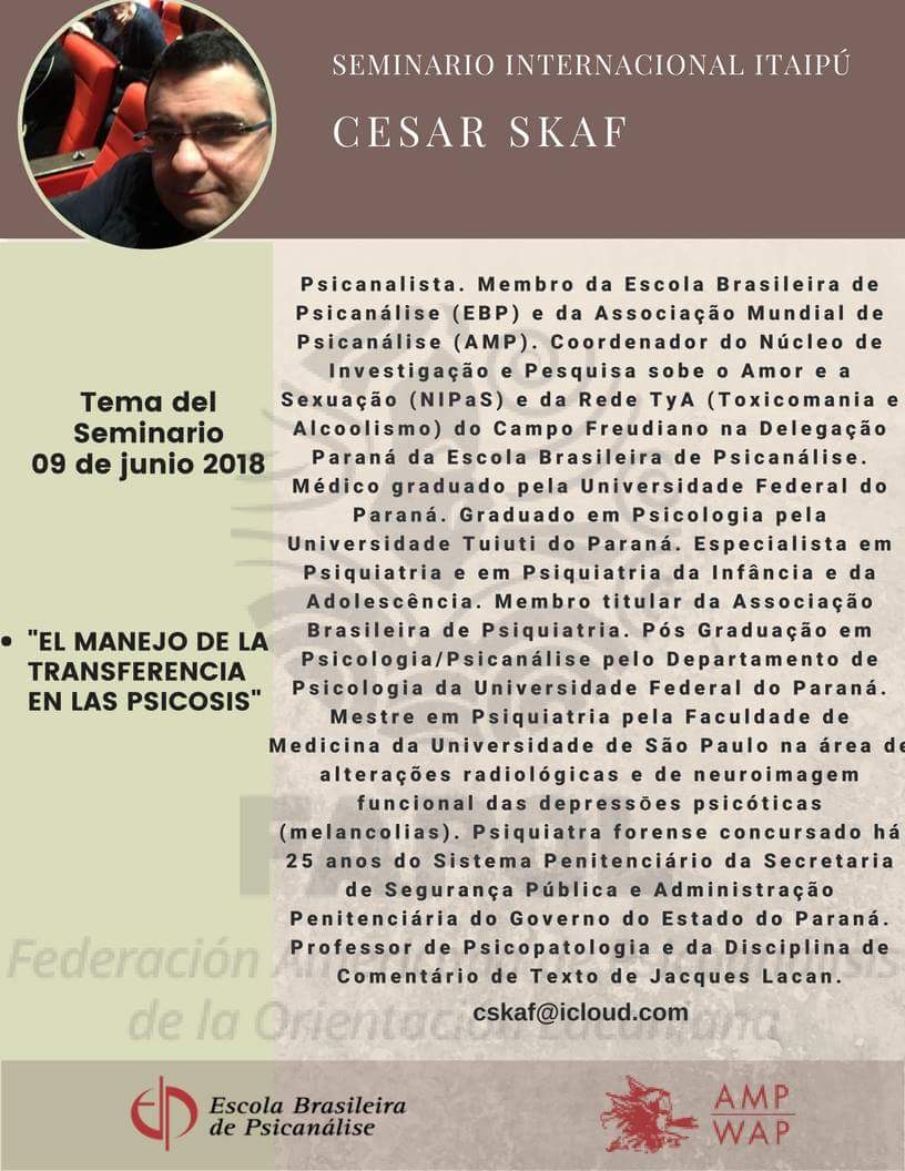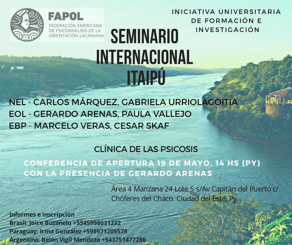 Evento a realizarse durante los meses de Mayo a Octubre, en la ciudad de Foz de Iguazú y Ciudad del Este y organizado por la Iniciativa Universitaria de Formación e Investigación dependiente de la Federación Americana de Psicoanálisis de la Orientación Lacaniana.