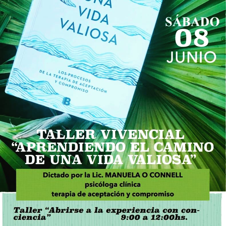 Talleres vivenciales basados en los procesos de la Terapia de Aceptación y Compromiso dictados por la Lic. Manuela O’ Connell (Bs As) quien realizará la presentación de su libro, en Librería Tras los Pasos. Abierto al público.