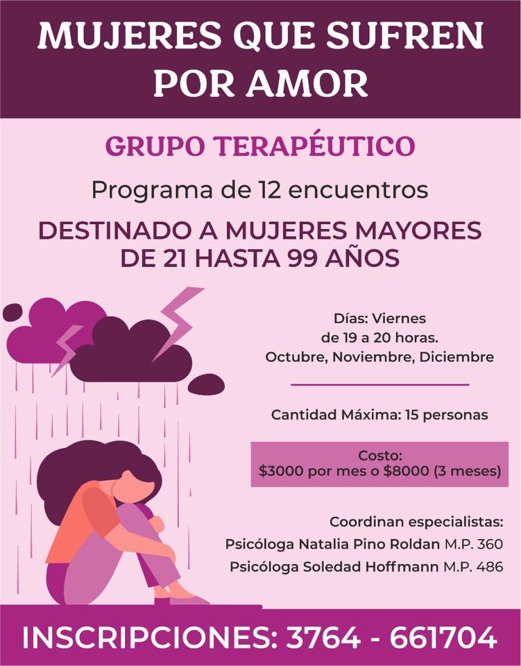 Por último, junto a la colega de Puerto Rico, Soledad Hofmann, realizaremos el primer grupo de autoayuda “mujeres que sufren por amor”